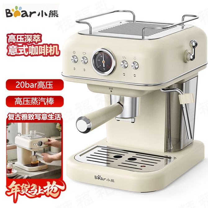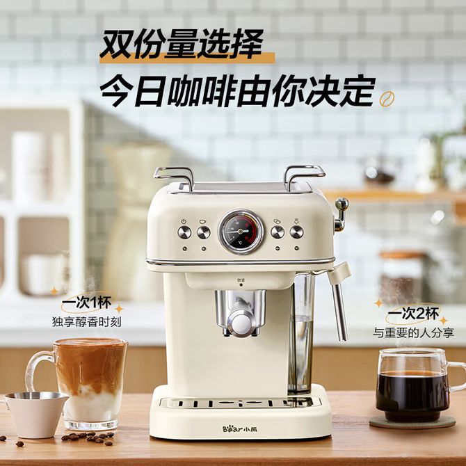 小熊/Bear 20bar高压萃取咖啡机 家用复古意式泵压式高压喷射可打奶泡高颜值外观 20bar高压萃取 复古仪表盘 高压蒸汽棒 水温实时显示 92°C水温萃取醇正风味 兑换价格 26100 里程 会员卡别 终身白金卡 白金卡 金卡 银卡 普通卡 儿童卡 服务 由 广西桂福礼供应链管理有限公司 发货并提供售后 颜色: 其他 购买数量: 件 库存件 配送地址: 立即购买 加入购物车 成功添加到购物车 关闭 购物车共有 种商品 总金额为: