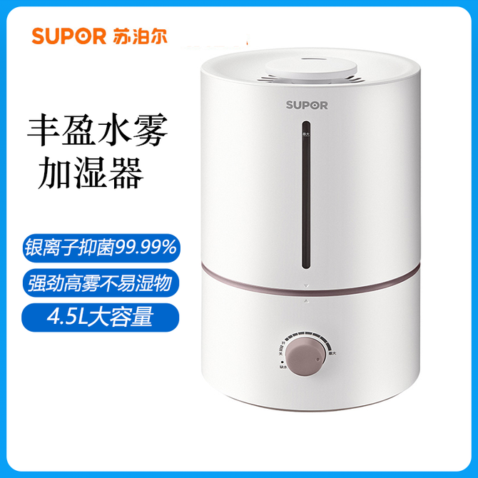 苏泊尔(SUPOR) 保湿大雾量4.5L大容量加湿器低音低噪 银离子抑菌双重防护安全守护 银离子抑菌99.99% 低音净润 300ml/h大雾量 强劲高雾不易湿物 4.5L大容量 无极旋钮调节雾量 双重防护安全守护 兑换价格 7000 里程 会员卡别 终身白金卡 白金卡 金卡 银卡 普通卡 儿童卡 服务 由 广西桂福礼供应链管理有限公司 发货并提供售后 颜色: 其他 购买数量: 件 库存件 配送地址: 立即购买 加入购物车 成功添加到购物车 关闭 购物车共有 种商品 总金额为: