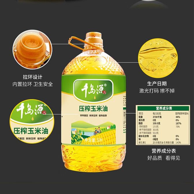 千岛源 压榨玉米油5L一级压榨食用油植物油桶装油润金黄口味清香 原料甄选安全放心,4重工艺重重锁住新鲜 兑换价格 4400 里程 会员卡别 终身白金卡 白金卡 金卡 银卡 普通卡 儿童卡 服务 由 壮乡优品生活馆 发货并提供售后 油品规格: 5L 购买数量: 件 库存件 配送地址: 立即购买 加入购物车 成功添加到购物车 关闭 购物车共有 种商品 总金额为: 组合销售 产品介绍 产品规格 售后服务 产品咨询 发现好货 长寿花 金胚玉米油食用油非转基因压榨一级 1.8L 2200 里程 珍佰粮菜籽油5L 5500 里程 福临门 一级大豆油900ML/瓶 优质家用食用油 1100 里程 福临门 家香味食用油 沂蒙土榨 花生仁油900ml 1600 里程 金龙鱼 浓香花生油5L 大桶装物理压榨一级厨房烹饪炒菜植物油粮油家庭食用油 浓香花生油食用油 5000 里程