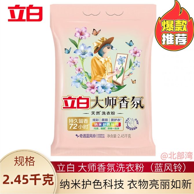 立白 大师香氛洗衣粉 4.9斤 持久留香柔顺护衣 洁净护色手洗机 洗祛味洗衣粉2.45kg 配置:大师香氛洗衣粉(蓝风铃)2450g,香味持久,洁衣护衣 兑换价格 1500 里程 会员卡别 终身白金卡 白金卡 金卡 银卡 普通卡 儿童卡 服务 由 广西北部湾网络科技有限公司 发货并提供售后 净含量: 其他容量 清洁剂容量: 其他容量 购买数量: 件 库存件 配送地址: 立即购买 加入购物车 成功添加到购物车 关闭 购物车共有 种商品 总金额为: 组合销售 产品介绍 产品规格 售后服务 产品咨询 发现好货 蓝月亮 深层洁净洗衣液4斤 1kgx1瓶+500gx2补充装 薰衣草香 强效去渍 1500 里程 威露士/Walch La有氧洗洗衣液套装 4斤松木清香(瓶1L+袋500ml*2) 除菌除螨 1900 里程 威露士 洗衣液除菌机洗手洗家用除螨去污1L*1瓶 1500 里程 蓝月亮 亮白增艳洗衣液2斤 1kg*1瓶 1100 里程 蓝月亮 护理洗衣液去污去渍 保护衣物纤维和原色 薰衣草香 1kg*2瓶 持久留香 速溶易漂 温和配方 1500 里程
