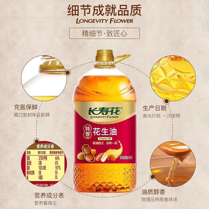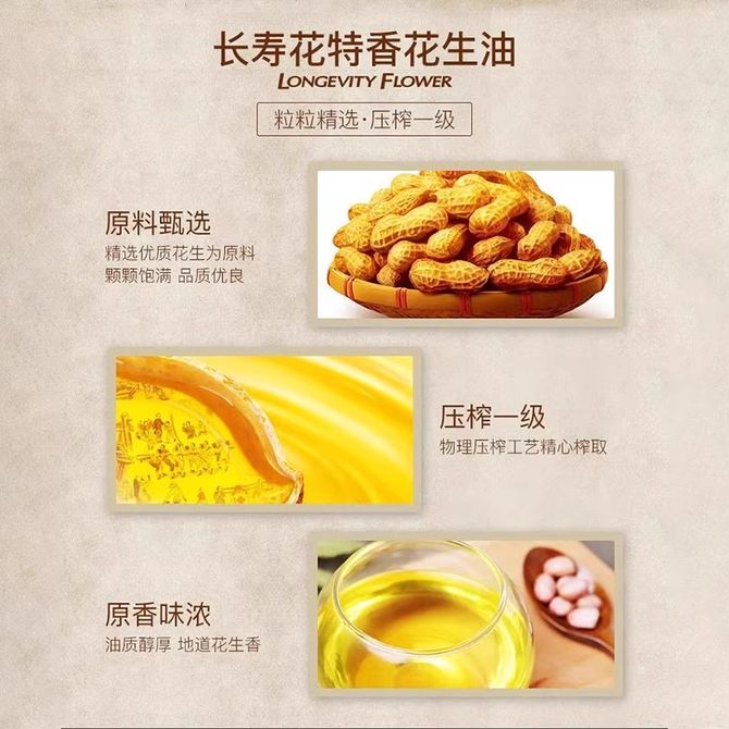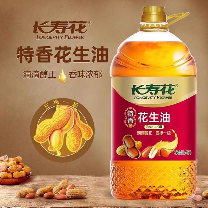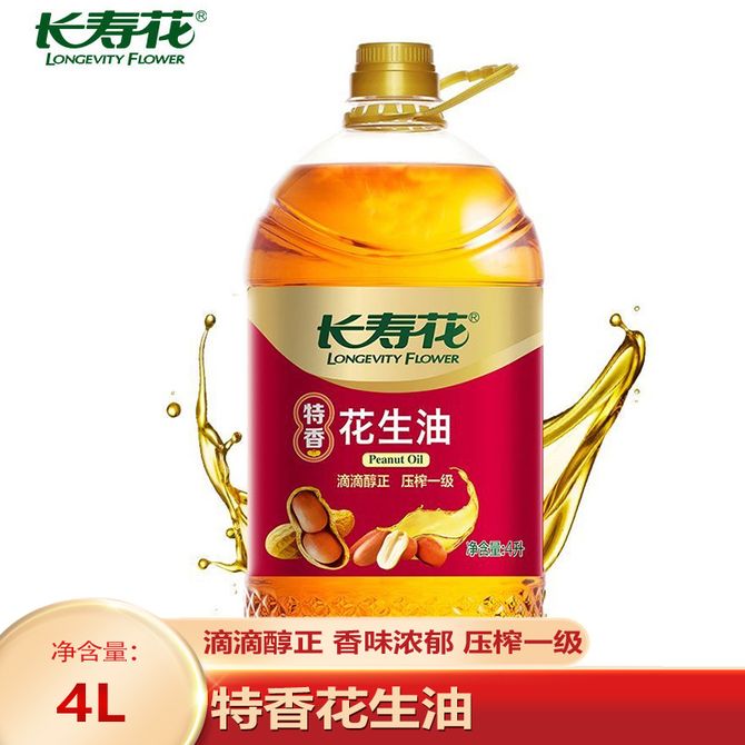 长寿花 特香花生油4L压榨一级花生油桶装油质醇厚地道花生香