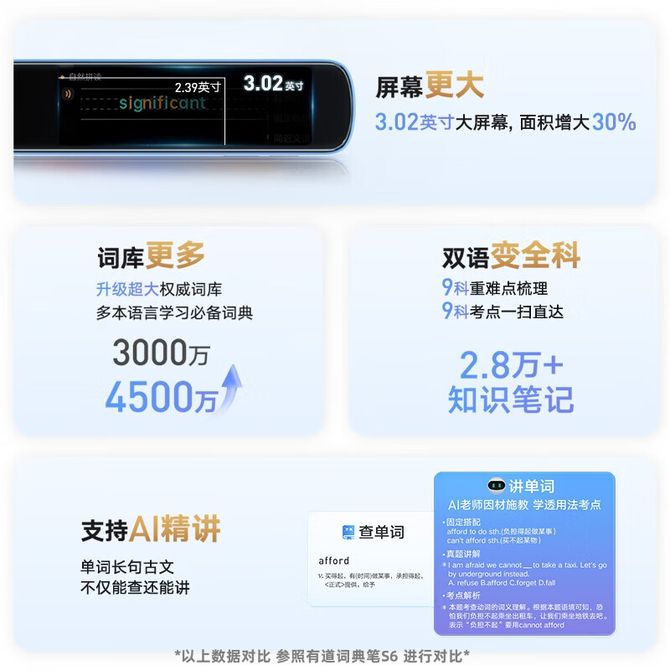 有道 英语点读笔智能离线扫描翻译词典笔S6 Pro(32G) 续航时间长,超大词库,会员产品咨询电话:4000312151 兑换价格 26100 里程 会员卡别 终身白金卡 白金卡 金卡 银卡 普通卡 儿童卡 服务 由 拓途天下数码专营店 发货并提供售后 词典尺寸: 3.0-3.5英寸 购买数量: 件 库存件 配送地址: 立即购买 加入购物车 成功添加到购物车 关闭 购物车共有 种商品 总金额为: