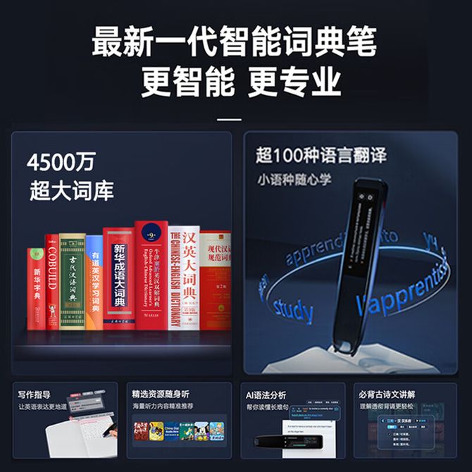 组合销售 产品介绍 产品规格 售后服务 产品咨询 发现好货 得力/Deli 词典笔英语点读笔翻译笔2.99英寸屏32GB学习机R3精英版 12200 里程 得力/Deli 词典笔翻译笔英语点读笔2.99英寸屏32GB学习机R3 13000 里程 阿尔法蛋 AI词典笔 D1 Pro 英语点读笔翻译笔 电子词典扫描笔单词笔学习机 18700 里程 有道 词典笔S6Pro 点读笔英语学习翻译神器 电子词典翻译笔扫描笔 翻译机学习笔单词笔扫读笔学习机 26100 里程 有道 词典笔A7Pro白色(32G) 21700 里程