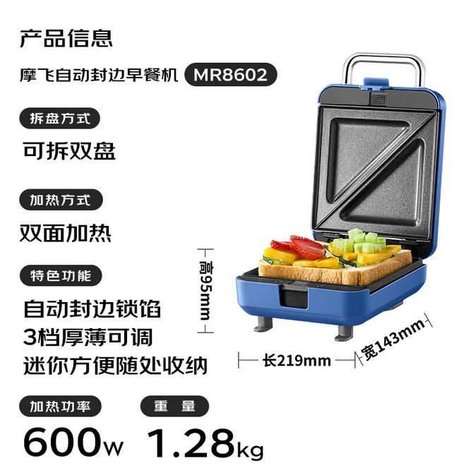 摩飞 /Morphy Richards 三明治机MR8602【轻奢蓝】早餐机面包机电饼铛家用多功能轻食机烤面包片机双面加热可拆双盘 早餐机面包机电饼铛家用多功能轻食机烤面包片机双面加热可拆双盘 兑换价格 10400 里程 会员卡别 终身白金卡 白金卡 金卡 银卡 普通卡 儿童卡 服务 由 纳华优选 发货并提供售后 颜色: 蓝色 购买数量: 件 库存件 配送地址: 立即购买 加入购物车 成功添加到购物车 关闭 购物车共有 种商品 总金额为: