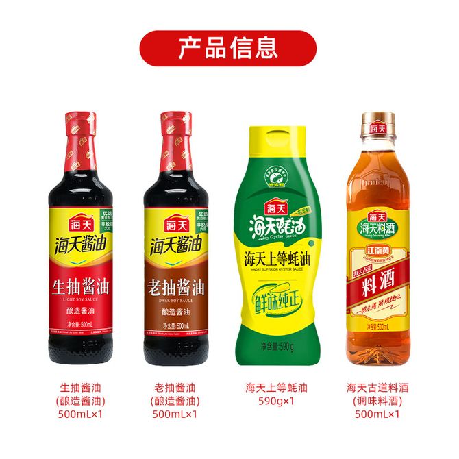 海天生抽酱油500ml 海天老抽酱油500ml 海天古道料酒500ml 海天上等蚝油590g
