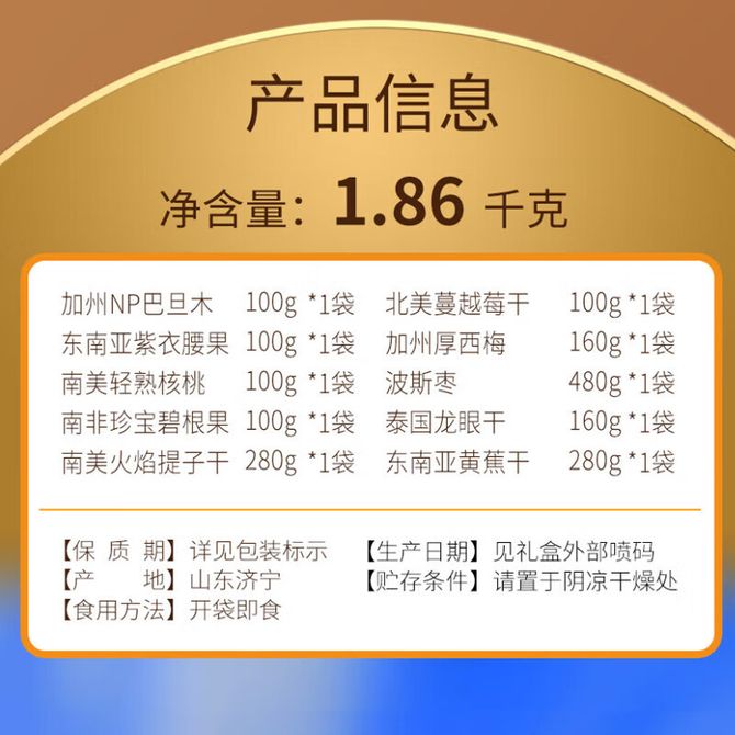 美荻斯 1860g 全球甄选·金果 坚果 全球甄选·金果1860g 兑换价格 7800 里程 会员卡别 终身白金卡 白金卡 金卡 银卡 普通卡 儿童卡 服务 由 同力阳光食品专营店 发货并提供售后 规格: 礼盒 购买数量: 件 库存件 配送地址: 立即购买 加入购物车 成功添加到购物车 关闭 购物车共有 种商品 总金额为: 组合销售 产品介绍 产品规格 售后服务 产品咨询 发现好货 西域美农 新疆薄皮核桃500g/袋 新疆特产原味 薄皮核桃 1300 里程 西域美农 烘焙腰果200g 坚果特产 休闲零食 带皮腰果仁 1600 里程 味滋源 紫皮腰果2袋装 每袋100g 1100 里程 沃隆每日坚果(A)175g盒装 1700 里程 百草味 坚果炒货夏威夷果100g*1袋 1100 里程