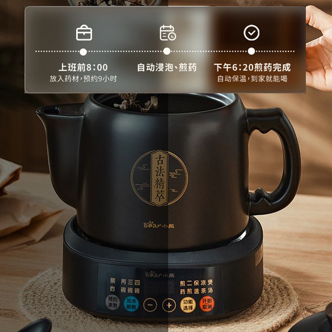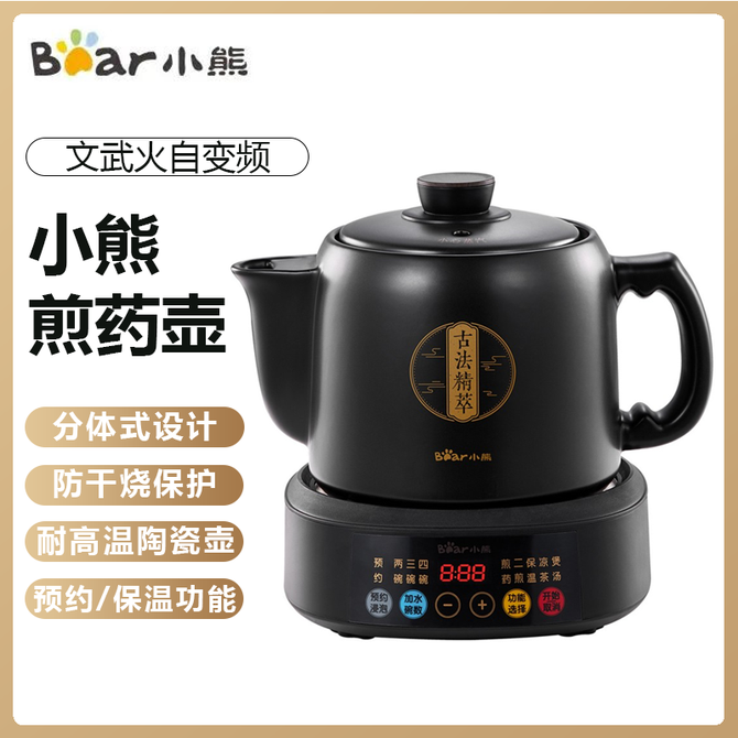 小熊/Bear 煎药壶3L全自动分体式家用电砂锅煎药壶熬炖中药一体智能彩色面板煮药锅煲药壶 分体式设计 防干烧保护 耐高温陶瓷壶 预约/保温功能 兑换价格 10000 里程 会员卡别 终身白金卡 白金卡 金卡 银卡 普通卡 儿童卡 服务 由 北京致诚博雅贸易有限公司 发货并提供售后 颜色: 其他 购买数量: 件 库存件 配送地址: 立即购买 加入购物车 成功添加到购物车 关闭 购物车共有 种商品 总金额为: