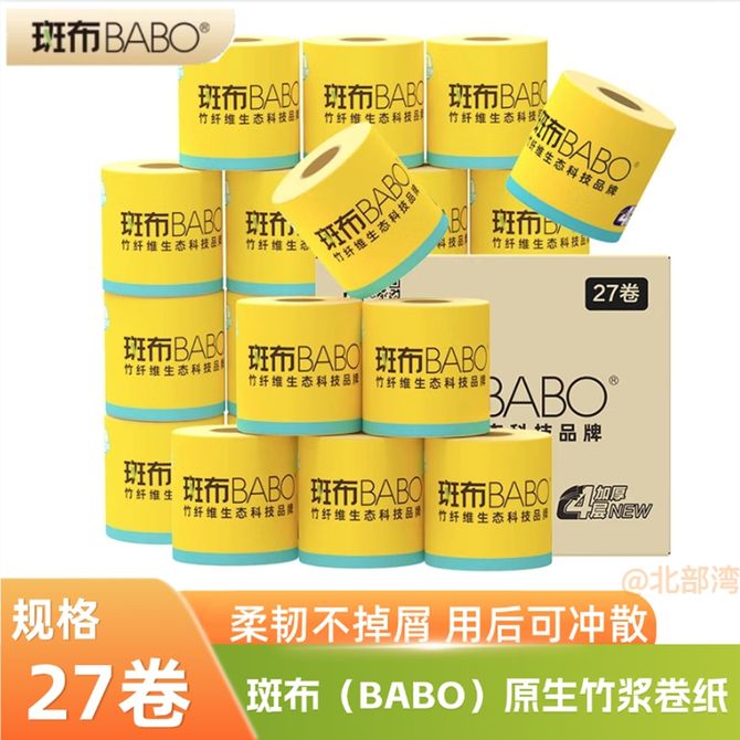 斑布 卷纸 4层150克*27卷 原生竹浆卷纸卷纸 卫生纸 卷筒纸 整箱 不漂白无荧光 安心擦拭 健康无忧 兑换价格 3000 里程 会员卡别 终身白金卡 白金卡 金卡 银卡 普通卡 儿童卡 服务 由 广西北部湾网络科技有限公司 发货并提供售后 包装数量: 箱 购买数量: 件 库存件 配送地址: 立即购买 加入购物车 成功添加到购物车 关闭 购物车共有 种商品 总金额为: 组合销售 产品介绍 产品规格 售后服务 产品咨询 发现好货 维达卷纸 卫生纸实惠装厕纸家用厕所纸巾手纸整箱批有芯大卷家庭装 1200-2300 里程 维达 Vinda 卷纸 140g/卷*10卷 蓝色经典3层卫生纸 1300 里程 心相印抽纸 茶语丝享系列 量贩家庭装 3层*100抽*4包(茶香 压花) 1100 里程 心相印 经典系列 二层面巾纸 180抽*6包*1提 1100 里程 维达Vinda 超韧系列抽纸(3层*130抽*6包) 原生木浆卫生餐巾纸婴儿面巾纸 6包优惠装 1100 里程