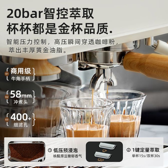 组合销售 产品介绍 产品规格 售后服务 产品咨询 发现好货 柏翠/Petrus 小白醒醒 浓缩意式咖啡机 1.2L可拆卸水箱 稳压萃取 家用小型半自动蒸汽打奶泡 26100 里程 磨客 咖啡机家用意式小型半自动花式浓缩咖啡蒸汽打奶泡一体泵压式高压萃取多功能奶泡机MK-382米白色 11500 里程 东菱/Donlim 触控咖啡机研磨一体机 智能恒温美式全自动滴滤式咖啡壶DL-KF1061 17300 里程 小熊/Bear 咖啡机美式 家用滴漏式全自动迷你小型咖啡粉泡茶两用办公室煮茶机KFJA06K1 4400 里程 东菱Donlim 触控研磨一体咖啡机 智能恒温美式全自动滴滤式咖啡壶DL-KF1061 19200 里程