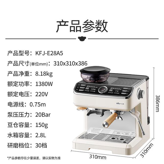 小熊/Bear 咖啡机KFJ-E28A5 意式半自动家用咖啡机 研磨一体机 现磨咖啡豆手动打奶泡 意式半自动家用咖啡机 研磨一体机 现磨咖啡豆手动打奶泡 兑换价格 95700 里程 会员卡别 终身白金卡 白金卡 金卡 银卡 普通卡 儿童卡 服务 由 纳华优选 发货并提供售后 颜色: 米色 购买数量: 件 库存件 配送地址: 立即购买 加入购物车 成功添加到购物车 关闭 购物车共有 种商品 总金额为: