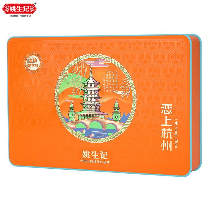 姚生记 恋上杭州西湖礼坚果礼盒298g礼盒双层结构西湖十景独立装
