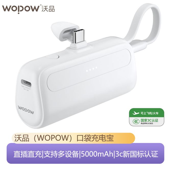 沃品/WOPOW 【国家3C认证】5000mAh口袋充电宝迷你小巧便携自带线移动电源 L35Pro 3C认证 可上飞机 机身有3C标识 兑换价格 3000 里程 会员卡别 终身白金卡 白金卡 金卡 银卡 普通卡 儿童卡 服务 由 贝洛美智能科技精品馆 发货并提供售后 电池容量: 3001mAh-5000mAh 颜色: 白色 购买数量: 件 库存件 配送地址: 立即购买 加入购物车 成功添加到购物车 关闭 购物车共有 种商品 总金额为: 组合销售 产品介绍 产品规格 售后服务 产品咨询 发现好货 ZNNCO 充电宝20000毫安时超薄小巧迷你自带线大容量快充移动电源便携苹果华为小米2万mAh手机 4200 里程 睿量/Remax 磁吸无线充电宝 Magsafe快充 5000mAh超薄小巧便携移动电源 手机背夹迷你移动电源 适用于苹果华为小米手机 RPP-107 4600 里程 雷摄 T68S【3C认证可上飞机】充电宝10000毫安 移动电源 22.5W快充丨1万毫安丨多口输出 1700 里程 纽曼(Newmine) 自带四线充电宝 3C认证 LED智能数显10000毫安移动电源 AL03 经典黑 3000 里程 雷摄 【3C认证】LS-YDZJ01 10000毫安 四线多功能移动电源 黑色 2000 里程