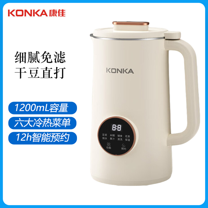 康佳/Konka 豆浆机细腻免过滤1200mL容量全自动免煮免过滤干豆直打家用多功能榨汁机 触控面板操作简单 六大冷热菜单 细腻免过滤 干豆直打 12h智能预约 1200mL容量 自动清洗 兑换价格 5700 里程 会员卡别 终身白金卡 白金卡 金卡 银卡 普通卡 儿童卡 服务 由 广西桂福礼供应链管理有限公司 发货并提供售后 颜色: 其他 购买数量: 件 库存件 配送地址: 立即购买 加入购物车 成功添加到购物车 关闭 购物车共有 种商品 总金额为: