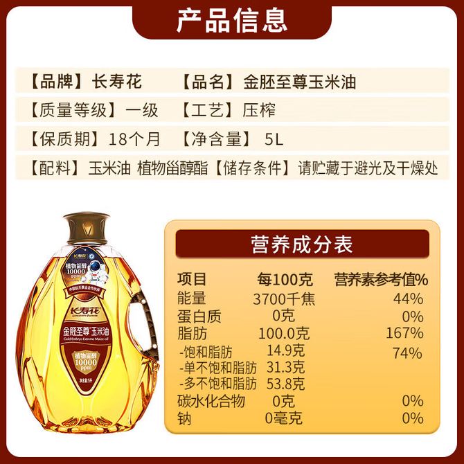长寿花LONGEVITY FLOWER 金胚至尊玉米油5升 非转基因物理压榨一级食用油 兑换价格 7900 里程 会员卡别 终身白金卡 白金卡 金卡 银卡 普通卡 儿童卡 服务 由 南美进口馆 发货并提供售后 油品规格: 5L 购买数量: 件 库存件 配送地址: 立即购买 加入购物车 成功添加到购物车 关闭 购物车共有 种商品 总金额为: 组合销售 产品介绍 产品规格 售后服务 产品咨询 发现好货 珍佰粮菜籽油5L 5500 里程 长寿花 金胚玉米油食用油非转基因压榨一级 1.8L 2200 里程 福临门 一级大豆油900ML/瓶 优质家用食用油 1100 里程 福临门 家香味食用油 沂蒙土榨 花生仁油900ml 1300 里程 长寿花金胚玉米油1.8L 2400 里程
