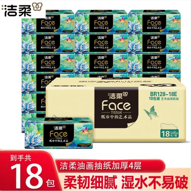洁柔 Face艺术油画软抽油画系列柔韧可湿水家用抽纸4层80抽18包装 4层80抽18包装湿水不易破 厚实4层更安心 柔软舒适亲肤细腻 兑换价格 2200 里程 会员卡别 终身白金卡 白金卡 金卡 银卡 普通卡 儿童卡 服务 由 广西北部湾网络科技有限公司 发货并提供售后 包装数量: 箱 购买数量: 件 库存件 配送地址: 立即购买 加入购物车 成功添加到购物车 关闭 购物车共有 种商品 总金额为: 组合销售 产品介绍 产品规格 售后服务 产品咨询 发现好货 维达卷纸 卫生纸实惠装厕纸家用厕所纸巾手纸整箱批有芯大卷家庭装 1200-2300 里程 维达 Vinda 卷纸 140g/卷*10卷 蓝色经典3层卫生纸 1300 里程 心相印抽纸 茶语丝享系列 量贩家庭装 3层*100抽*4包(茶香 压花) 1100 里程 心相印 经典系列 二层面巾纸 180抽*6包*1提 1100 里程 维达Vinda 超韧系列抽纸(3层*130抽*6包) 原生木浆卫生餐巾纸婴儿面巾纸 6包优惠装 1100 里程