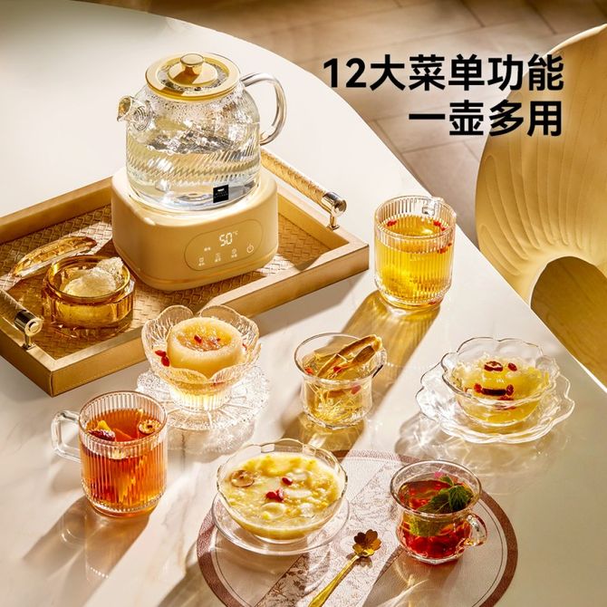组合销售 产品介绍 产品规格 售后服务 产品咨询 发现好货 九阳/Joyoung 养生壶1.5L茶具电茶壶煮茶壶花茶壶玻璃煮茶器煎药壶中药锅药膳电水壶烧水壶 3900 里程 九阳/Joyoung 养生壶迷你玻璃花茶壶煮茶器 12大功能11档温度 电水壶热水壶烧水壶 1.5L DGD1506BQ 3900 里程 美的/Midea 养生壶 1.5L家用多功能小型全自动办公室烧水壶加厚玻璃煮茶热水壶 MK-YS15P201 4200 里程 美的/Midea 养生壶 1.5L家用养生壶全自动玻璃烧水壶24h预约烧水壶12小时防干烧保护智能恒温 MK-YS15P202 3700 里程 美的/Midea 养生壶 1.5L全自动电热水壶 24h预约12小时智能恒温 14大功能11档控温 花茶壶煮茶器MK-Y12Q 3500 里程