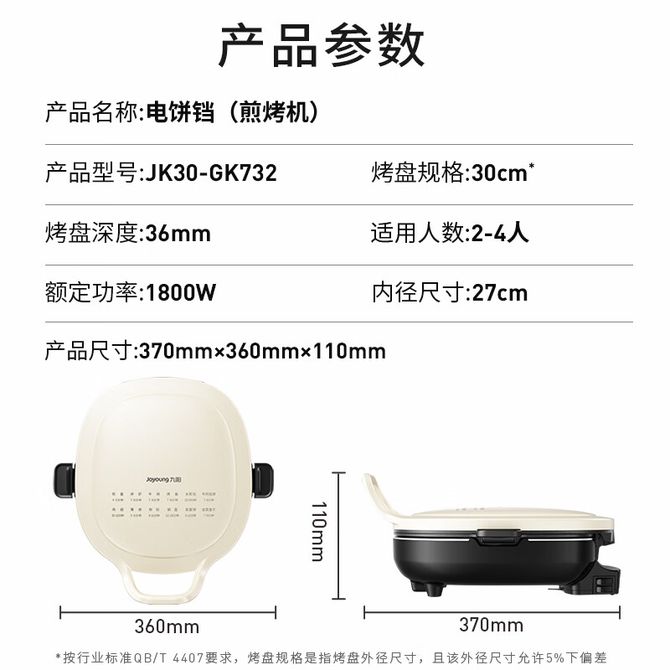 组合销售 产品介绍 产品规格 售后服务 产品咨询 发现好货 苏泊尔(SUPOR)电饼铛家用 双面加热煎饼铛煎烤机三明治机烙饼锅早餐机25mm加深烤盘火力可调JD31A847A 6500 里程 苏泊尔(SUPOR) 电饼铛 自动煎烤机 电火锅多功能 加大加深60mm双加热烙饼 锅面煎饼电饼档 两档火力 JT30A818 5700 里程 苏泊尔(SUPOR)电饼铛家用双面加热电饼档煎烤机烙饼机双面悬浮加热早餐机三明治机JJ30A648-Q 5700 里程 美的(Midea)电饼铛家用智能双面加热煎烤机烙饼机蛋饼机薄饼机煎饼烙饼锅JHN30F 4800 里程 奥克斯 电饼铛家庭用新款双面加热加大尺寸加深烤盘烙饼专用锅自动控温断电煎饼锅早餐机 5200 里程
