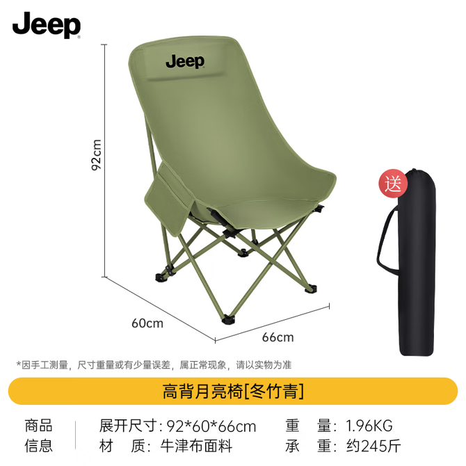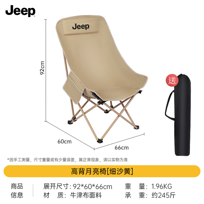 Jeep 三面环抱加厚头枕可折叠高背月亮椅(多色可选) 黑色、西沙黄(黄色)、冬竹青(绿色)、米白色 多色可选 兑换价格 3000 里程 会员卡别 终身白金卡 白金卡 金卡 银卡 普通卡 儿童卡 服务 由 至恩户外运动专营店 发货并提供售后 颜色: 黑色 黄色 绿色 米白色 购买数量: 件 库存件 配送地址: 立即购买 加入购物车 成功添加到购物车 关闭 购物车共有 种商品 总金额为: