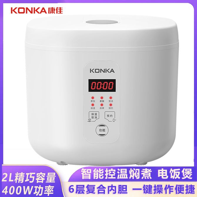 康佳/Konka 电饭煲 2L容量家用宿舍小电饭锅煮饭锅煮粥锅煮饭煲智能控温焖煮400W功率 智能控温焖煮 400W大功率 2L精巧容量 6层复合内胆 一键操作便捷 兑换价格 4800 里程 会员卡别 终身白金卡 白金卡 金卡 银卡 普通卡 儿童卡 服务 由 广西自贸区京通桂达科技发展有限公司 发货并提供售后 颜色: 其他 购买数量: 件 库存件 配送地址: 立即购买 加入购物车 成功添加到购物车 关闭 购物车共有 种商品 总金额为: 组合销售 产品介绍 产品规格 售后服务 产品咨询 发现好货 苏泊尔(SUPOR) 电饭煲电饭锅4L大容量 不粘内胆4-6个人前置大屏面板24小时预约上蒸下煮多功能家用智能SF40FC0063 7700 里程 美菱/MELNG 电饭煲3L触控式预约定时MF-LC3005 4400 里程 美的(Midea) 电饭煲 家用3L智能预约多功能电饭锅小型1-4人煮饭锅智能 白色 MB-FB30M161 7800 里程 康佳/Konka 迷你电饭煲小电饭锅2L容量智能温控12小时预约煮饭煮粥锅 4800 里程 美的/Midea 电饭煲电饭锅3-4个人家用4L大容量聚能釜金属机身大火力米饭锅【升级焖香阀】RE417 8700 里程