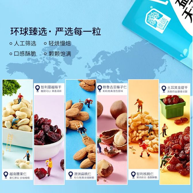 组合销售 产品介绍 产品规格 售后服务 产品咨询 发现好货 西域美农 新疆薄皮核桃500g/袋 新疆特产原味 薄皮核桃 1300 里程 西域美农 烘焙腰果200g 坚果特产 休闲零食 带皮腰果仁 1600 里程 味滋源 紫皮腰果2袋装 每袋100g 1100 里程 沃隆每日坚果(A)175g盒装 1700 里程 百草味 坚果炒货夏威夷果100g*1袋 1100 里程