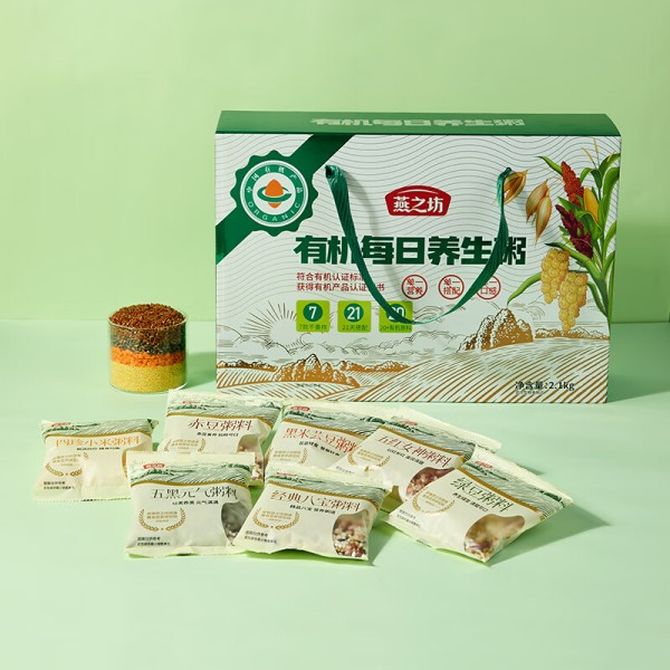 燕之坊 有机每日养生粥2.1kg杂粮礼盒 杂粮礼盒 有机每日养生粥2.1kg杂粮礼盒 兑换价格 5500 里程 会员卡别 终身白金卡 白金卡 金卡 银卡 普通卡 儿童卡 服务 由 隆泰行食品专营店 发货并提供售后 规格: 礼盒 购买数量: 件 库存件 配送地址: 立即购买 加入购物车 成功添加到购物车 关闭 购物车共有 种商品 总金额为: 组合销售 产品介绍 产品规格 售后服务 产品咨询 发现好货 素养生活 有机黄小米 500g/袋 五谷杂粮 1200 里程 素养生活 有机薏仁米 500g/袋 五谷杂粮 1400 里程 素养生活 有机燕麦米 500g/袋 五谷杂粮 1200 里程 素养生活 有机黄豆 450g/袋 五谷杂粮 1200 里程 素养生活 有机黄小米 1kg/袋 五谷杂粮 1900 里程