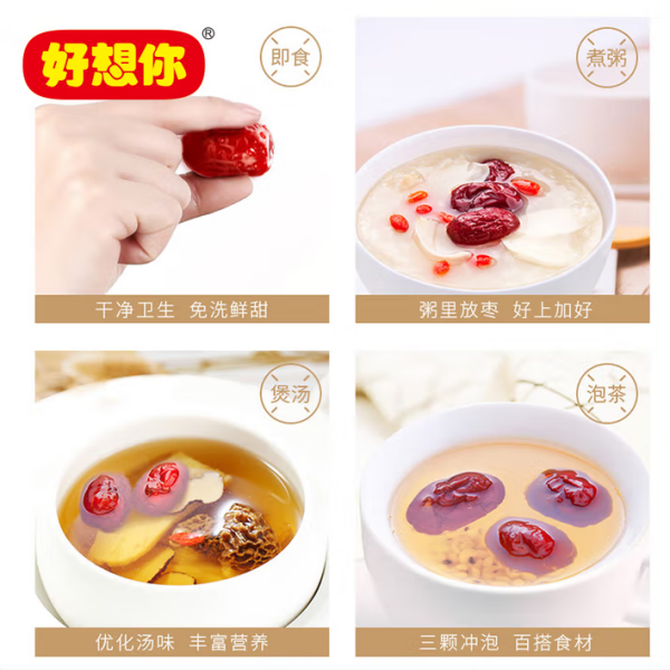 好想你 一级免洗红枣 枣有心意礼盒805g 天然无添加即食枣礼盒 一级免洗红枣 规格;27袋*1盒;新旧包装随机发货 兑换价格 1900 里程 会员卡别 终身白金卡 白金卡 金卡 银卡 普通卡 儿童卡 服务 由 一间食品馆 发货并提供售后 规格: 盒装 购买数量: 件 库存件 配送地址: 立即购买 加入购物车 成功添加到购物车 关闭 购物车共有 种商品 总金额为: 组合销售 产品介绍 产品规格 售后服务 产品咨询 发现好货 珍佰粮和田骏枣500g 买一送一 1600 里程 西域美农 六星新疆和田红枣 500g/袋 1700 里程 西域美农 特惠推荐 5斤装新疆若羌灰枣 超值量贩家庭实惠装 2600 里程 百草味 四色葡萄干500g罐装新疆吐鲁番特产黑加仑免洗一级大果干蜜饯零食 1100 里程 西域美农 新疆若羌灰枣 500g*2袋 免洗大枣 1300 里程