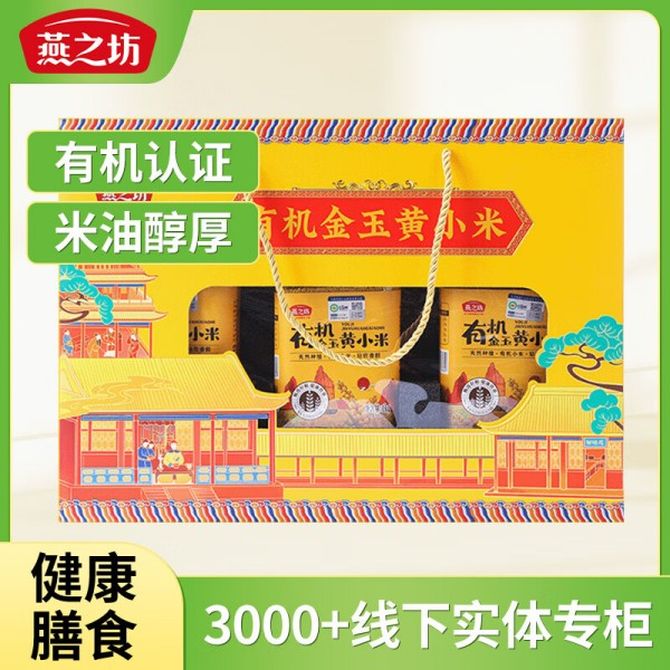 燕之坊 有机金玉黄小米礼盒3kg C01070011207 有机金玉黄小米礼盒3kg 兑换价格 5900 里程 会员卡别 终身白金卡 白金卡 金卡 银卡 普通卡 儿童卡 服务 由 隆泰行食品专营店 发货并提供售后 规格: 礼盒 购买数量: 件 库存件 配送地址: 立即购买 加入购物车 成功添加到购物车 关闭 购物车共有 种商品 总金额为: 组合销售 产品介绍 产品规格 售后服务 产品咨询 发现好货 素养生活 有机黄小米 500g/袋 五谷杂粮 1200 里程 素养生活 有机薏仁米 500g/袋 五谷杂粮 1400 里程 素养生活 有机燕麦米 500g/袋 五谷杂粮 1200 里程 素养生活 有机黄豆 450g/袋 五谷杂粮 1200 里程 素养生活 有机黄小米 1kg/袋 五谷杂粮 1900 里程