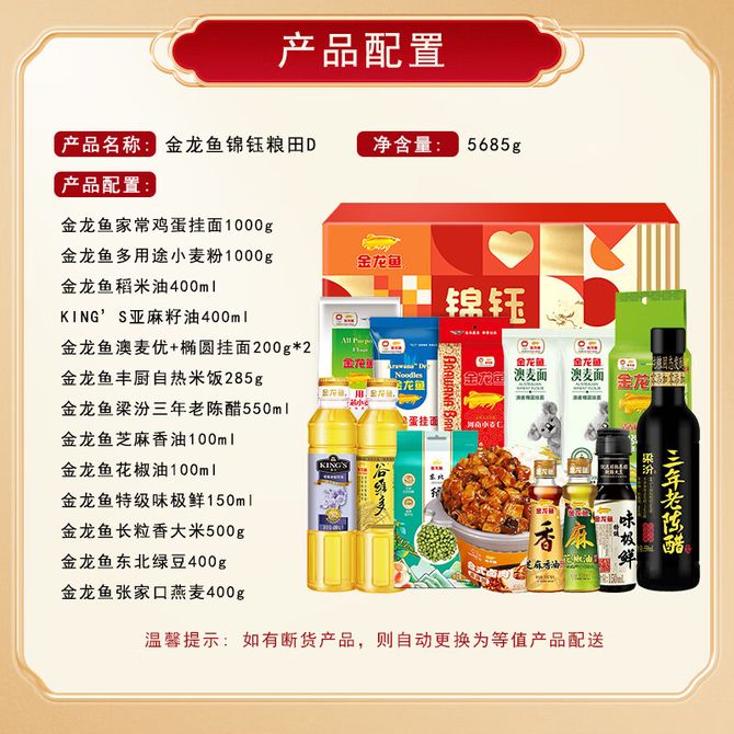 金龙鱼 大礼包-锦钰粮田D款 3985g+1700ml 香油 大米 味极鲜 锦钰粮田D款 兑换价格 7400 里程 会员卡别 终身白金卡 白金卡 金卡 银卡 普通卡 儿童卡 服务 由 同力阳光食品专营店 发货并提供售后 规格: 礼盒 购买数量: 件 库存件 配送地址: 立即购买 加入购物车 成功添加到购物车 关闭 购物车共有 种商品 总金额为: 组合销售 产品介绍 产品规格 售后服务 产品咨询 发现好货 黄天鹅 黄天鹅 可生食鸡蛋标准 3.18斤/盒30枚 3300 里程 沃隆每日坚果A款750g礼盒(25克*30) 6100 里程 稻香村 糕点礼盒1500g/盒 小吃点心礼盒 糕点点心礼盒 传统特产 3900 里程 稻香村 糕点礼盒3000g/盒 传统小吃京八件点心 零食糕点 6500 里程 燕之坊 缤纷杂粮粥礼盒2.1kg(21日不重样 八宝杂粮 五谷养生腊八粥) 2600 里程