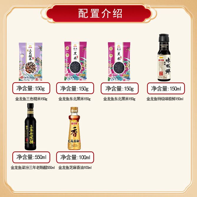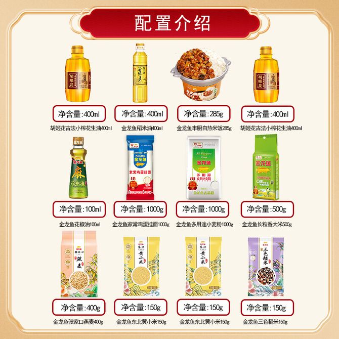 金龙鱼 味极鲜 香油 大礼包-锦钰粮田E款 4065g+2100ml 锦钰粮田E款 兑换价格 10100 里程 会员卡别 终身白金卡 白金卡 金卡 银卡 普通卡 儿童卡 服务 由 同力阳光食品专营店 发货并提供售后 规格: 礼盒 购买数量: 件 库存件 配送地址: 立即购买 加入购物车 成功添加到购物车 关闭 购物车共有 种商品 总金额为: 组合销售 产品介绍 产品规格 售后服务 产品咨询 发现好货 黄天鹅 黄天鹅 可生食鸡蛋标准 3.18斤/盒30枚 3300 里程 沃隆每日坚果A款750g礼盒(25克*30) 6100 里程 稻香村 糕点礼盒1500g/盒 小吃点心礼盒 糕点点心礼盒 传统特产 3900 里程 稻香村 糕点礼盒3000g/盒 传统小吃京八件点心 零食糕点 6500 里程 燕之坊 缤纷杂粮粥礼盒2.1kg(21日不重样 八宝杂粮 五谷养生腊八粥) 2600 里程
