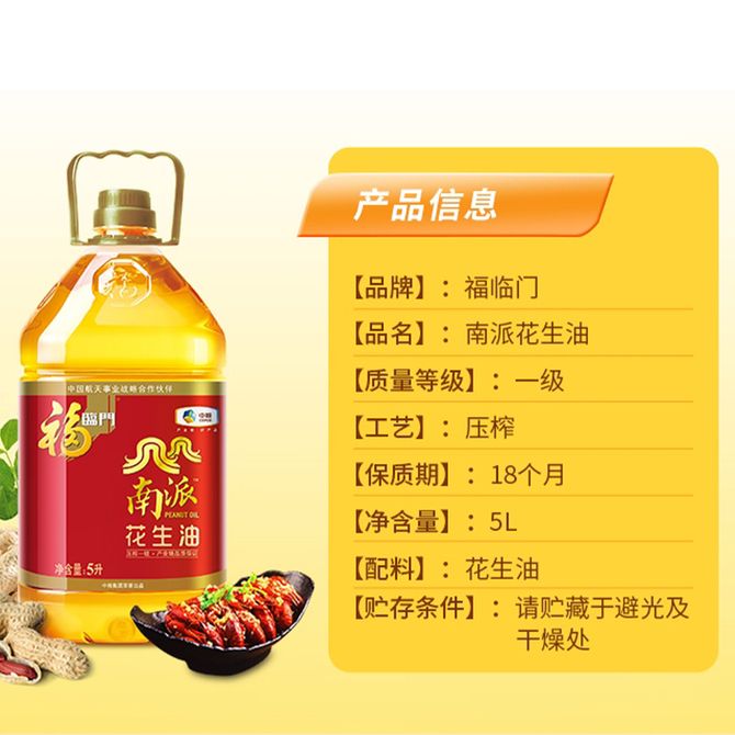 福临门 南派花生油5L醇香味浓一级花生油厨房健康烹饪食用油