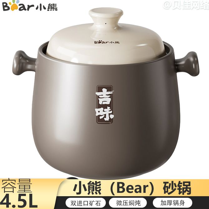 小熊 砂锅 4.5L容量煲汤锅耐高温微压焖炖煲仔饭锅 4.5L容量详情图片共用;双进口矿石,微压焖炖,加厚锅身。 兑换价格 6500 里程 会员卡别 终身白金卡 白金卡 金卡 银卡 普通卡 儿童卡 服务 由 广西自贸区贝佳网络科技有限公司 发货并提供售后 颜色: 其他 购买数量: 件 库存件 配送地址: 立即购买 加入购物车 成功添加到购物车 关闭 购物车共有 种商品 总金额为: 组合销售 产品介绍 产品规格 售后服务 产品咨询 发现好货 荣事达/Royalstar 煲锅 砂锅煲汤熬药煮粥焖饭砂锅陶瓷炖汤沙锅家用养生汤锅瓦煲瓦罐4.6L 3900 里程 爱仕达(ASD) 煲锅 砂锅煲汤炖锅2.5L陶瓷煲仔饭砂锅燃气灶明火专用 4800 里程 炊大皇/Cookerking 砂锅5L耐高温陶瓷煲多用炖锅汤锅家用养生煲陶瓷锅明火煤燃气灶专用TCXW5002 4400 里程 炊大皇/Cookerking 砂锅 6L耐高温陶瓷煲多用炖锅汤锅 家用养生煲陶瓷锅 明火煤燃气灶专用TCXW6003 5300 里程 苏泊尔(SUPOR) 砂锅煲汤锅炖锅4.5L养生煲耐高温不开裂陶瓷煲EB45MAT01 6000 里程