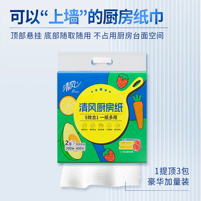 清风 悬挂式抽纸200抽厨房专用纸巾吸水吸油懒人抹布擦手纸餐巾纸 2层 200抽*1提 多种包装随机发货 兑换价格 1100 里程 会员卡别 终身白金卡 白金卡 金卡 银卡 普通卡 儿童卡 服务 由 智泽店铺 发货并提供售后 包装数量: 1提 购买数量: 件 库存件 配送地址: 立即购买 加入购物车 成功添加到购物车 关闭 购物车共有 种商品 总金额为: 组合销售 产品介绍 产品规格 售后服务 产品咨询 发现好货 维达卷纸 卫生纸实惠装厕纸家用厕所纸巾手纸整箱批有芯大卷家庭装 1200-2300 里程 维达 Vinda 卷纸 140g/卷*10卷 蓝色经典3层卫生纸 1300 里程 心相印抽纸 茶语丝享系列 量贩家庭装 3层*100抽*4包(茶香 压花) 1100 里程 心相印 经典系列 二层面巾纸 180抽*6包*1提 1100 里程 维达Vinda 超韧系列抽纸(3层*130抽*6包) 原生木浆卫生餐巾纸婴儿面巾纸 6包优惠装 1100 里程
