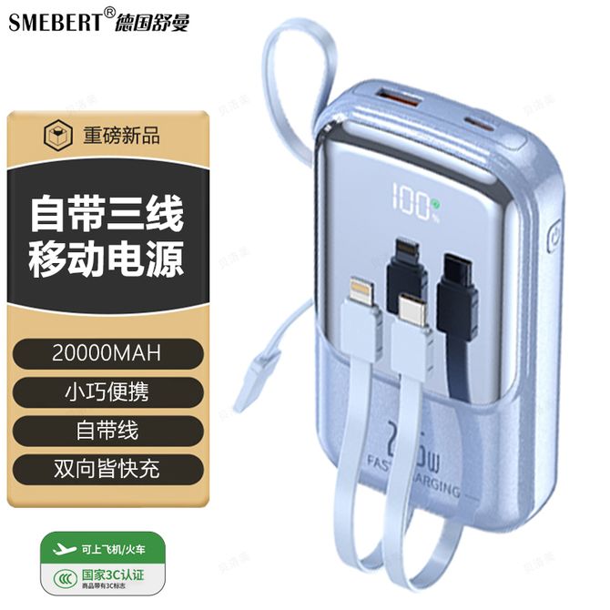 Smebert 【国家3C认证】20000毫安大容量移动电源22.5W快充迷你小巧便携充电宝 KP200蓝色 3C认证 可上飞机 机身有3C标识 兑换价格 7400 里程 会员卡别 终身白金卡 白金卡 金卡 银卡 普通卡 儿童卡 服务 由 贝洛美智能科技精品馆 发货并提供售后 电池容量: 10001mAh-20000mAh 颜色: 蓝色 购买数量: 件 库存件 配送地址: 立即购买 加入购物车 成功添加到购物车 关闭 购物车共有 种商品 总金额为: