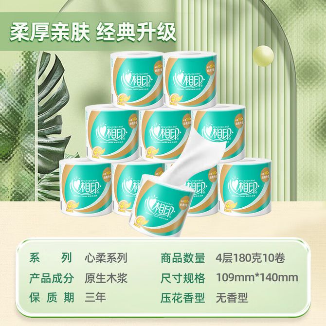 心相印 卷纸有芯大卷纸180克 10卷 柔厚升级 紧致厚实卫生纸实惠装纸巾心心相印家用厕纸整箱手纸 加厚四层纸,去污洁净,点断式分割,方便截取,新旧包装随机发货 兑换价格 1400 里程 会员卡别 终身白金卡 白金卡 金卡 银卡 普通卡 儿童卡 服务 由 京狮文化生活馆 发货并提供售后 包装数量: 1提 购买数量: 件 库存件 配送地址: 立即购买 加入购物车 成功添加到购物车 关闭 购物车共有 种商品 总金额为: 组合销售 产品介绍 产品规格 售后服务 产品咨询 发现好货 维达卷纸 卫生纸实惠装厕纸家用厕所纸巾手纸整箱批有芯大卷家庭装 1200-2300 里程 维达 Vinda 卷纸 140g/卷*10卷 蓝色经典3层卫生纸 1300 里程 心相印抽纸 茶语丝享系列 量贩家庭装 3层*100抽*4包(茶香 压花) 1100 里程 心相印 经典系列 二层面巾纸 180抽*6包*1提 1100 里程 维达Vinda 超韧系列抽纸(3层*130抽*6包) 原生木浆卫生餐巾纸婴儿面巾纸 6包优惠装 1100 里程