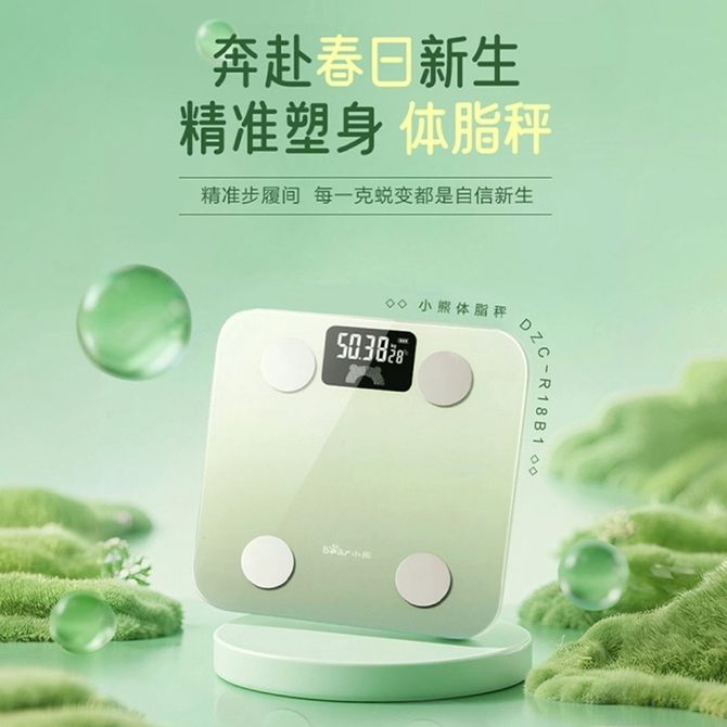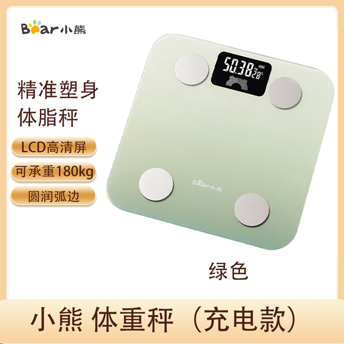 小熊/Bear LCD高清屏专业智能体脂秤减肥健身电子秤 家用高精准塑形减脂测量-绿色 (详情图片共用-绿色)LCD高清屏 5mm强化可承重180kg 圆润弧边顺滑安全 兑换价格 3000 里程 会员卡别 终身白金卡 白金卡 金卡 银卡 普通卡 儿童卡 服务 由 广西桂福礼供应链管理有限公司 发货并提供售后 颜色: 其他 购买数量: 件 库存件 配送地址: 立即购买 加入购物车 成功添加到购物车 关闭 购物车共有 种商品 总金额为: