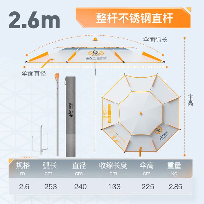 佳钓尼 钓鱼伞大钓伞手杖雨伞防暴雨防晒遮阳伞 2.6米 橙小白直竿伞【伞杆升级】 【加厚不锈钢12棱防转伞竿】 周一到周五 工作日发货 兑换价格 9100 里程 会员卡别 终身白金卡 白金卡 金卡 银卡 普通卡 儿童卡 服务 由 京楠世纪户外专营店 发货并提供售后 颜色: 其他 购买数量: 件 库存件 配送地址: 立即购买 加入购物车 成功添加到购物车 关闭 购物车共有 种商品 总金额为: 组合销售 产品介绍 产品规格 售后服务 产品咨询 发现好货 民间艺人 鱼箱 活鱼桶装鱼桶 EVA折叠多功能加厚打水桶小号 1700 里程 民间艺人 电子夜光漂425号电池 电子漂配件 10粒装 1100 里程 民间艺人 鱼箱 活鱼桶装鱼桶 EVA折叠多功能加厚打水桶中号 2400 里程 民间艺人 饵料盆 大中小三件套 高强度钓鱼开饵盆散炮盆 1100 里程 民间艺人 电子夜光漂425号电池 电子漂配件 20粒装 1800 里程