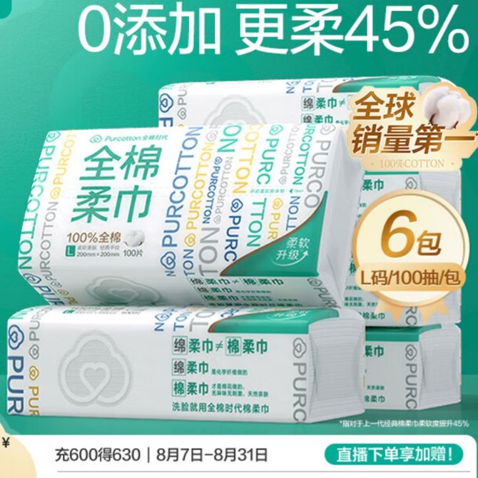 全棉时代/PURCOTTON 居家棉柔巾抽纸巾湿水可用200*200mm/100抽/包*6包/套 棉柔巾 一次性棉柔巾 兑换价格 4000 里程 会员卡别 终身白金卡 白金卡 金卡 银卡 普通卡 儿童卡 服务 由 松升个护专营店 发货并提供售后 包装数量: 1提 购买数量: 件 库存件 配送地址: 立即购买 加入购物车 成功添加到购物车 关闭 购物车共有 种商品 总金额为: 组合销售 产品介绍 产品规格 售后服务 产品咨询 发现好货 维达卷纸 卫生纸实惠装厕纸家用厕所纸巾手纸整箱批有芯大卷家庭装 1200-2300 里程 维达 Vinda 卷纸 140g/卷*10卷 蓝色经典3层卫生纸 1300 里程 心相印抽纸 茶语丝享系列 量贩家庭装 3层*100抽*4包(茶香 压花) 1100 里程 心相印 经典系列 二层面巾纸 180抽*6包*1提 1100 里程 维达Vinda 超韧系列抽纸(3层*130抽*6包) 原生木浆卫生餐巾纸婴儿面巾纸 6包优惠装 1100 里程