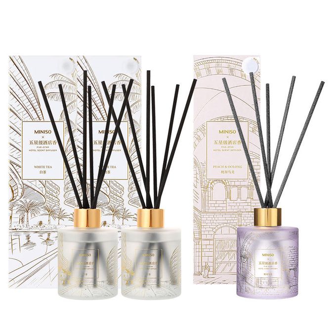 名创优品/MINISO 五星级酒店系列-香薰3瓶装(白茶120ml*2+桃沏乌龙120ml*1) 五星级酒店系列-香薰3瓶装(白茶120ml*2+桃沏乌龙120ml*1) 兑换价格 4600 里程 会员卡别 终身白金卡 白金卡 金卡 银卡 普通卡 儿童卡 服务 由 品质家纺 发货并提供售后 颜色: 其他 购买数量: 件 库存件 配送地址: 立即购买 加入购物车 成功添加到购物车 关闭 购物车共有 种商品 总金额为: 组合销售 产品介绍 产品规格 售后服务 产品咨询 发现好货 京东京造 除湿盒400ml*3盒 干燥剂除湿剂防潮剂除湿袋 室内衣服房间防潮除霉 1100 里程 京东京造 除湿桶750ml*2 除湿盒干燥剂除湿袋防潮剂吸湿防霉衣柜室内除湿 1800 里程 京东京造 冰箱除味剂 活性炭冰箱除味杀菌神器冰箱除臭剂冰箱除味盒140g*2 1100 里程 京东京造 固体清新剂8个装 空气清新剂 除臭剂 卫生间除臭 除味剂 香氛膏 1500 里程 京东京造 奶昔固体清新剂 柠檬 3只装 空气清新剂 除臭剂 卫生间除臭 除味剂 香氛膏 1100 里程