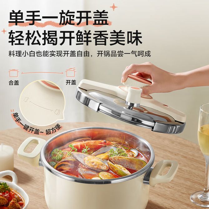苏泊尔(SUPOR) 2025新款巧易开悦旋压力快锅5L汤锅双压多功能EY223KAW3 1、360°随心合盖,不必费力对准卡槽 2、100kPa高压鲜烹汤浓饭香,高压加速食材炖煮 3、下排汽限压阀,搭配积水池,与传统压力锅相比避免蒸汽四溢导致烫伤 4、304食品接触用材质,健康品质 兑换价格 21300 里程 会员卡别 终身白金卡 白金卡 金卡 银卡 普通卡 儿童卡 服务 由 人人余厨具专营店 发货并提供售后 颜色: 米白色 购买数量: 件 库存件 配送地址: 立即购买 加入购物车 成功添加到购物车 关闭 购物车共有 种商品 总金额为: 组合销售 产品介绍 产品规格 售后服务 产品咨询 发现好货 炊大皇(COOKER KING) 压力锅高压锅7重安全防爆8L适合4-8人燃气电磁炉通用 24cm 12200 里程 爱仕达/ASD 高压锅燃气明火防爆六保险5.3L铝合金22CM家用压力锅YL22S2WG 5500 里程 双喜小康装铝压力锅20CMLM-06C 5000 里程 帝伯朗TIBORANG 高压锅家用燃气电磁炉通用安全防爆压力锅商用大容量多功能压力锅 压力煲 高压锅 22cm 6L 13000 里程 爱仕达/ASD 六保险T型压力锅(带蒸格)24cm高压锅压力锅安全防爆 7000 里程