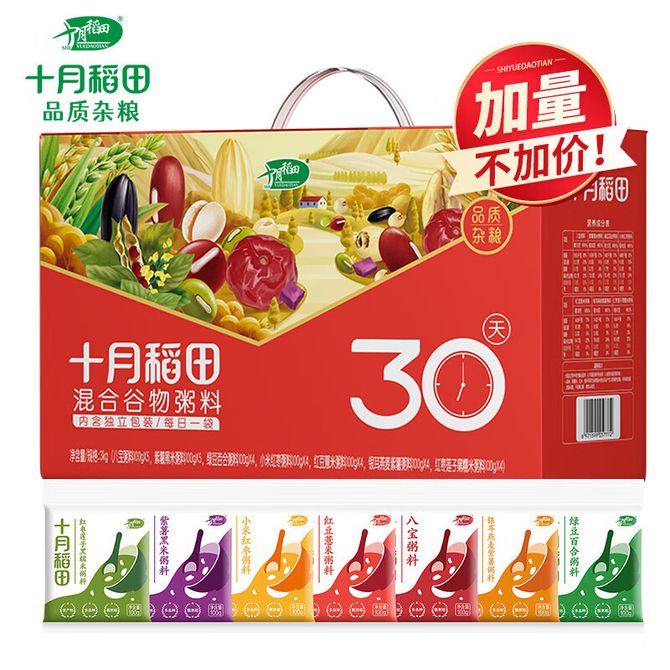 十月稻田 30天混合谷物粥料 礼盒装6斤(30*100g) 膳食平衡 均衡营养 兑换价格 4400 里程 会员卡别 终身白金卡 白金卡 金卡 银卡 普通卡 儿童卡 服务 由 凯赋甄选 发货并提供售后 规格: 礼盒 购买数量: 件 库存件 配送地址: 立即购买 加入购物车 成功添加到购物车 关闭 购物车共有 种商品 总金额为: 组合销售 产品介绍 产品规格 售后服务 产品咨询 发现好货 金熊 泰国茉莉 香米 1kg 泰国原料进口 1300 里程 十月稻田当季新米辽河长粒香大米 5kg 东北大米 香米 粳米 十斤 2100 里程 源头说 五常有机稻花香新米 东北大米 2.5kg(双重防伪认证) 4200 里程 十月稻田 长粒香大米2.5kg 东北大米5斤 东北香米 1300 里程 稻可道雪地黑土东北珍珠大米5kg 1600 里程