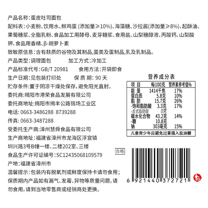 港荣 蛋皮吐司面包420g*2箱 夹心蛋糕点心学生营养早餐 鸡蛋添加>10%,清爽沙拉酱,0添加蔗糖 兑换价格 1900 里程 会员卡别 终身白金卡 白金卡 金卡 银卡 普通卡 儿童卡 服务 由 锦里云食品店 发货并提供售后 规格: 盒装 购买数量: 件 库存件 配送地址: 立即购买 加入购物车 成功添加到购物车 关闭 购物车共有 种商品 总金额为: 组合销售 产品介绍 产品规格 售后服务 产品咨询 发现好货 西域美农 雪花山楂条 200g*2袋装 1100 里程 稻香村 桃酥640g 老式宫廷饼干 点心传统糕点 1600 里程 稻香村 蜂蜜蛋糕330g/袋*2 糕点 小吃 早餐食品 稻香村蜂蜜蛋糕 早餐面包蛋糕 1300 里程 鲜记 每日坚果7日装140g 混合坚果果干坚果炒货孕妇营养健康休闲零食坚果礼盒 1300 里程 【西域美农 买一赠一】新品无花果夹核桃仁 买250g/袋 赠250g/袋 3500 里程