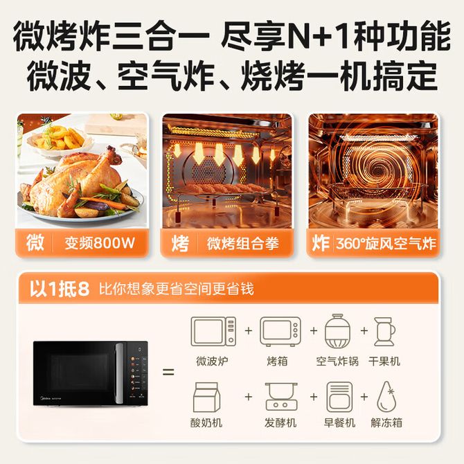 美的/Midea C2F1小旋风空气炸微波炉 不锈钢腔体 智能解冻 低噪音23L 小旋风空气炸微波炉烤箱一体机 800W变频 不锈钢腔体 智能解冻 低噪音23L(C2F1) 兑换价格 34800 里程 会员卡别 终身白金卡 白金卡 金卡 银卡 普通卡 儿童卡 服务 由 禾木电器馆 发货并提供售后 颜色: 黑色 购买数量: 件 库存件 配送地址: 立即购买 加入购物车 成功添加到购物车 关闭 购物车共有 种商品 总金额为: