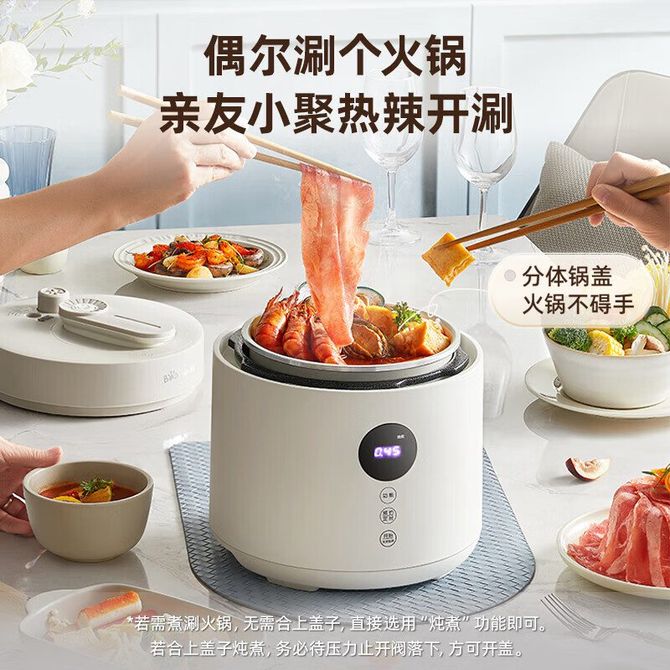组合销售 产品介绍 产品规格 售后服务 产品咨询 发现好货 苏泊尔(SUPOR)电压力锅 6升大容量 智能触控 球釜双胆 开盖收汁 一键排压 SY-60YC8001Q 高压锅 16900 里程 美的/Midea 电压力锅家用5L大容量多功能高压锅双胆一键收汁智能预约不粘电高压锅电饭锅煮粥煲汤锅 一锅双胆【一键收汁入味】 YL50M1-702 10600 里程 苏泊尔(SUPOR) 5L电压力锅家用电高压锅双胆高压电饭锅煮饭智能预约 SY-50YC8186 11300 里程 美的/Midea 电压力锅 【一锅双胆】5L全自动家用智能预约 上蒸下煮 不粘双胆煲汤炖肉 YL50Q3-451 10900 里程 美的/Midea 电压力锅 高压锅家用电压力煲智能预约电饭煲大容量多功能定时预约电饭煲3-8人单胆旋钮款4L MY-E4809 8700 里程
