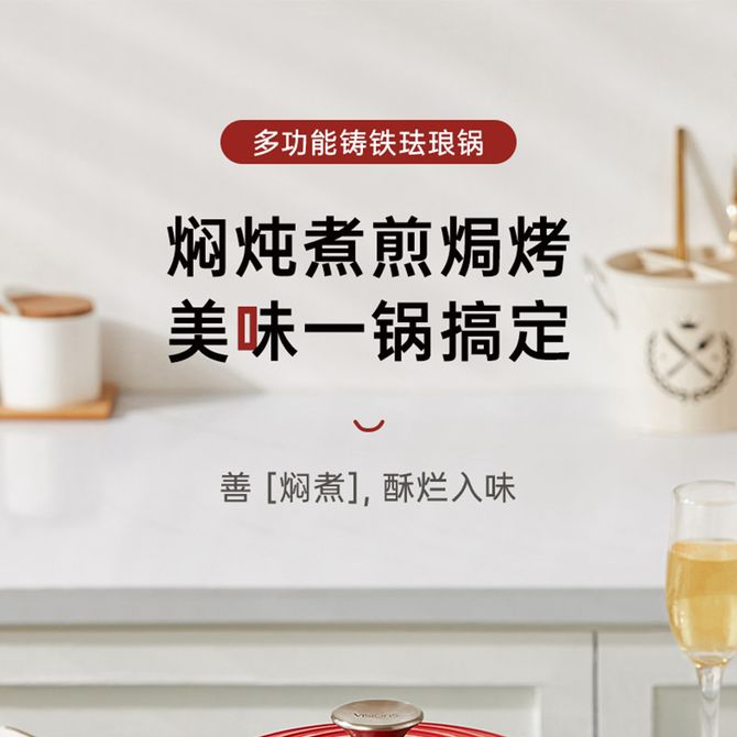 VISIONS 悦厨珐琅锅 24cm 铸铁锅 家用厨房煲汤炖锅煮锅一锅多用