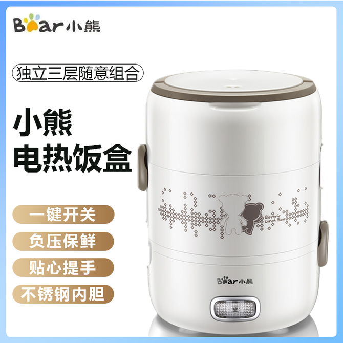 小熊/Bear 电热饭盒2L三层独立大容量304不锈钢内胆负压密封保鲜蒸汽环流立体加热电热饭盒