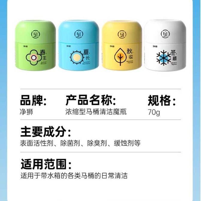净狮/clealion 洁厕灵放水箱马桶清洁剂厕所洁厕宝强力除黄垢除臭去异味【4瓶/可用1年左右】 净狮 马桶清洁魔盒4瓶 缓释配方 兑换价格 5000 里程 会员卡别 终身白金卡 白金卡 金卡 银卡 普通卡 儿童卡 服务 由 单正个护专营店 发货并提供售后 清洁剂容量: 其他容量 净含量: 其他容量 购买数量: 件 库存件 配送地址: 立即购买 加入购物车 成功添加到购物车 关闭 购物车共有 种商品 总金额为: 组合销售 产品介绍 产品规格 售后服务 产品咨询 发现好货 舒肤佳抑菌洗手液 纯白清香420g+柠檬420g(新老包装随机发货) 3400 里程 滴露/Dettol 泡沫抑菌洗手液青柠香型250ml 1300 里程 蓝月亮 卫诺沁香花园香氛洁厕液 500g×6瓶 4100 里程 滴露/Dettol 消毒液消毒水1.8L衣物除菌液家居宠物环境地板杀菌除螨 非84酒精 3110246 4100 里程 立白 生姜洗洁精 2.5kg 除腥祛味 1200 里程