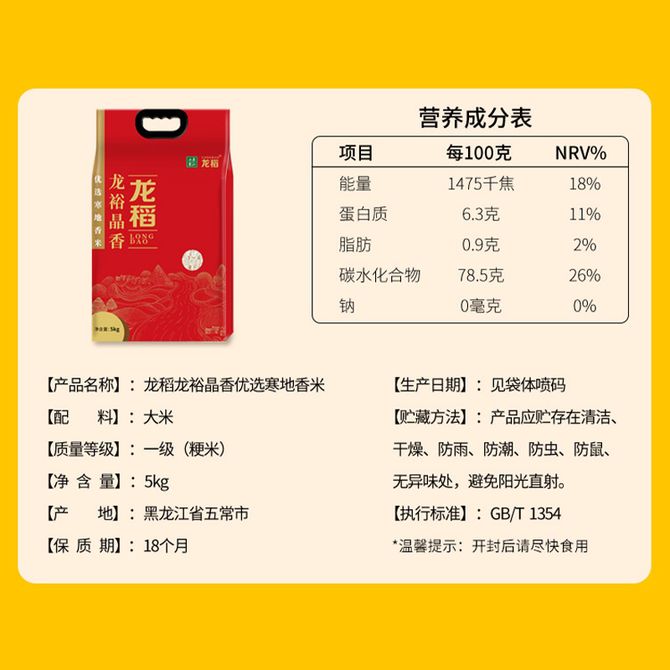 龙稻/LONGDAO 龙裕晶香优选寒地香米5kg真空包装优选寒地香米米粒修长饱满米饭黏而不腻