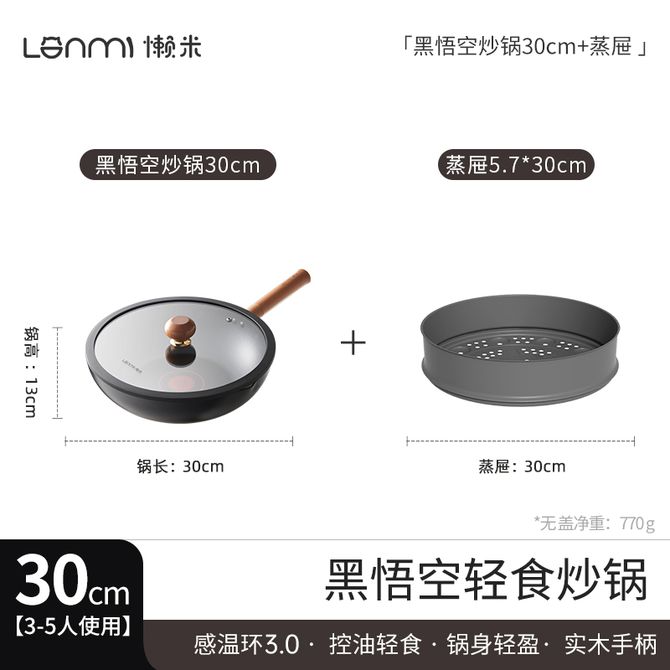 懒米 黑悟空不粘炒锅 30cm家用厨房烹饪炒菜锅 带蒸屉 一体旋压成型,钛晶不粘,控油感温 兑换价格 7400 里程 会员卡别 终身白金卡 白金卡 金卡 银卡 普通卡 儿童卡 服务 由 众生缘(江苏)互联网科技有限公司 发货并提供售后 颜色: 其他 购买数量: 件 库存件 配送地址: 立即购买 加入购物车 成功添加到购物车 关闭 购物车共有 种商品 总金额为: 组合销售 产品介绍 产品规格 售后服务 产品咨询 发现好货 苏泊尔 炫彩易洁不粘炒锅 NC30F4 8700 里程 炊大皇/Cookerking 炒锅 30cm+盖子 无涂层聚油爆炒精铁锅炒菜锅电磁炉燃气通用锅具精铁锅 3900 里程 九阳(Joyoung)炒锅家用32cm无涂层铸铁炒菜锅可立盖CF32C-CJ232-A 4400 里程 张小泉 32CM匠艺老铁锅多炉可用精铁炒锅锅具厨具C30240100 8300 里程 爱仕达/ASD 新不粘煎炒锅炒锅28cm不粘锅炒菜锅平底煎炒锅WG8328E 4800 里程
