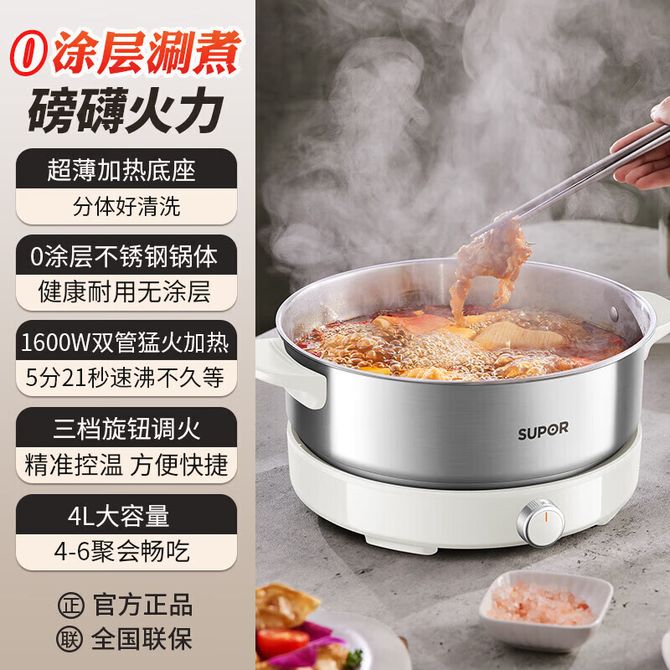 苏泊尔(SUPOR) 不锈钢电火锅H40YKX57 电煮锅 火锅专用锅 家用多功能分体式电热锅 涮肉打火锅4L多用途锅 电煮锅 火锅专用锅 家用多功能分体式电热锅 涮肉打火锅4L多用途锅 兑换价格 13000 里程 会员卡别 终身白金卡 白金卡 金卡 银卡 普通卡 儿童卡 服务 由 纳华优选 发货并提供售后 颜色: 白色 购买数量: 件 库存件 配送地址: 立即购买 加入购物车 成功添加到购物车 关闭 购物车共有 种商品 总金额为: