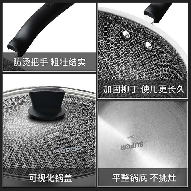 苏泊尔(SUPOR) 30cm蜂窝复合钢炒锅304不锈钢全屏微雕晶纹防粘炒菜锅 304不锈钢 全屏防粘 不怕铁铲 可视锅盖 兑换价格 9600 里程 会员卡别 终身白金卡 白金卡 金卡 银卡 普通卡 儿童卡 服务 由 众生缘(江苏)互联网科技有限公司 发货并提供售后 颜色: 其他 购买数量: 件 库存件 配送地址: 立即购买 加入购物车 成功添加到购物车 关闭 购物车共有 种商品 总金额为: 组合销售 产品介绍 产品规格 售后服务 产品咨询 发现好货 苏泊尔 炫彩易洁不粘炒锅 NC30F4 8700 里程 苏泊尔(SUPOR) 臻火蜂窝铁锅32cm 家用无涂层老式熟铁炒锅平底煎炒锅锅具 3400 里程 拜格(Bayco) 平底炒锅煎蛋锅平底锅锤纹小铁锅BG50137【28cm】 1900 里程 德世朗(DESLON) 无涂层炒锅铁锅可视化盖龙鳞0氟精铁不粘炒锅32cm炒菜锅炉灶通用 黑色 3500 里程 炊大皇/Cookerking 炒锅 30cm+盖子 无涂层聚油爆炒精铁锅炒菜锅电磁炉燃气通用锅具精铁锅 3900 里程